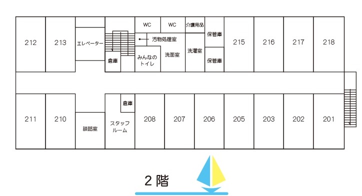 日中だけでなく夜間も介護士が常駐し必要なケアや 緊急時の対応等を行います。